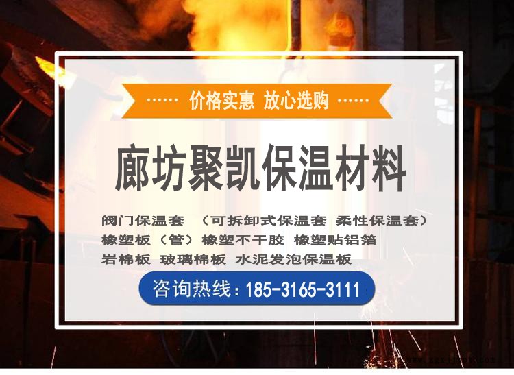 廊坊聚凱保溫材料有限公司是保溫、隔熱材料、等產(chǎn)品生產(chǎn)加工的公司,擁有完整、科學(xué)的質(zhì)量管理體系。 廊坊聚凱保溫材料有限公司的誠信、實(shí)力和產(chǎn)品質(zhì)量獲得業(yè)界的認(rèn)可。歡迎各界朋友蒞臨參觀、指導(dǎo)和業(yè)務(wù)洽談。 廊坊聚凱保溫材料有限公司產(chǎn)品有巖棉、離心玻璃棉、復(fù)合硅酸鹽、硅酸鎂、硅酸鋁纖維板、管、毯 、PVC/NBR橡塑海綿、泡沫玻璃板、管、硬質(zhì)聚氨酯板、管、PEF高壓聚乙烯保溫及防火材料。 “聚凱”產(chǎn)品特色:可按客戶各種不同要求提供合適且價(jià)位適中的產(chǎn)品,進(jìn)行防火保溫,吸音降噪功能性使用材料,產(chǎn)品生產(chǎn)工藝純熟,原材料質(zhì)量及成品質(zhì)量由公司部門嚴(yán)格把關(guān),保證所有到達(dá)客戶方產(chǎn)品均為達(dá)標(biāo)產(chǎn)品;“聚凱”企業(yè) 一直以為堅(jiān)信人才為企業(yè)的根本,聘請多位高資高薪技術(shù)人員,并培養(yǎng)企精神理念,使企業(yè)人力資源固根守本、生產(chǎn)技術(shù)精益求精,為廣大新老客戶提供穩(wěn)定的服務(wù)及達(dá)標(biāo)的產(chǎn)品。質(zhì)量保證,信譽(yù)至上,提供好的產(chǎn)品,服務(wù)是聚凱不懈的追求和的承諾。。聚凱保溫材料服務(wù),物優(yōu)價(jià)美的產(chǎn)品質(zhì)量真誠希望各界商友同仁光臨指導(dǎo),共建保溫耐火節(jié)能建材業(yè)界繁榮事業(yè)。。 廊坊聚凱保溫材料有限公司打造建材業(yè)界旗艦品牌!