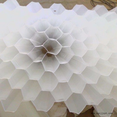 生產(chǎn)的六角形蜂窩填料有斜管和直管兩種形式。材質(zhì)有聚丙烯和玻璃鋼二種。