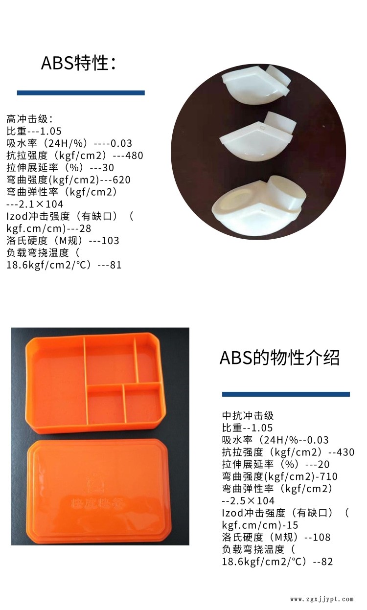 大部分ABS是無毒的,不透水,但略透水蒸氣,吸水率低,室溫浸水一年吸水率不超過1%而物理性能不起變化。ABS樹脂制品表面可以拋光,能得到高度光澤的制品。比一般塑料的強(qiáng)度高3-5倍。
