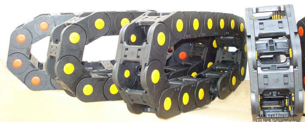 是一種的拖鏈類型。按照結構可分為橋式塑料拖鏈與全封閉塑料拖鏈;按照型號分為小型拖鏈、一般型拖鏈與大型拖鏈;按照噪音系數(shù)可分為普通拖鏈與靜音拖鏈;按照形式可分為普通拖鏈、并聯(lián)拖鏈、S型拖鏈;按原料分為原包塑料和再生塑料等。