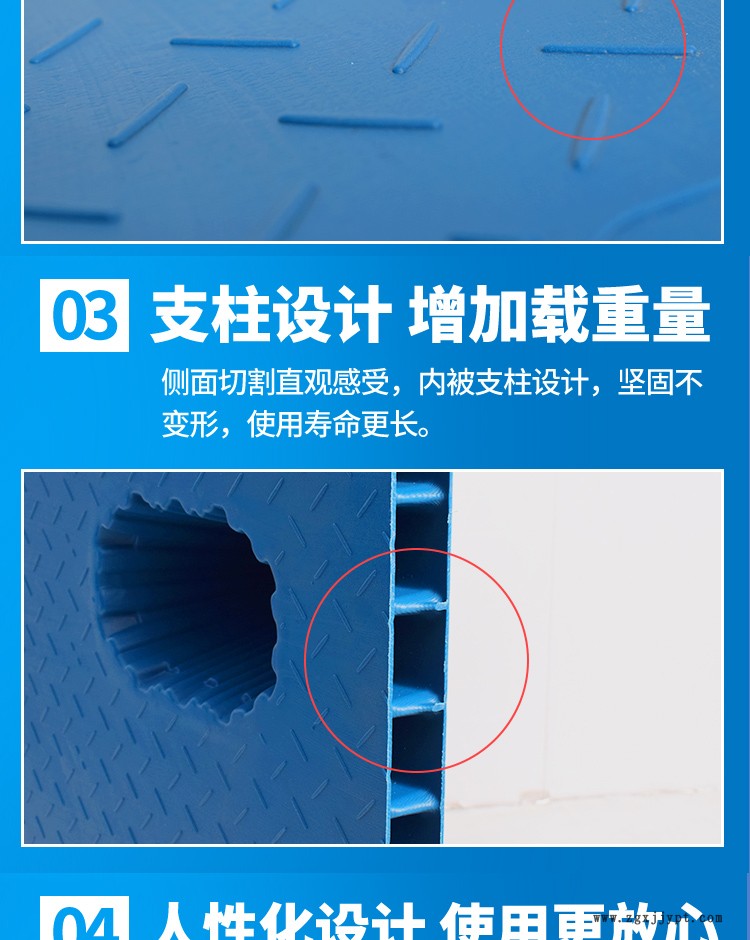 3、吹塑托盤產品造型新穎別致,結構設計合理,表面為凹槽設計,防滑性好,無邊角余料。