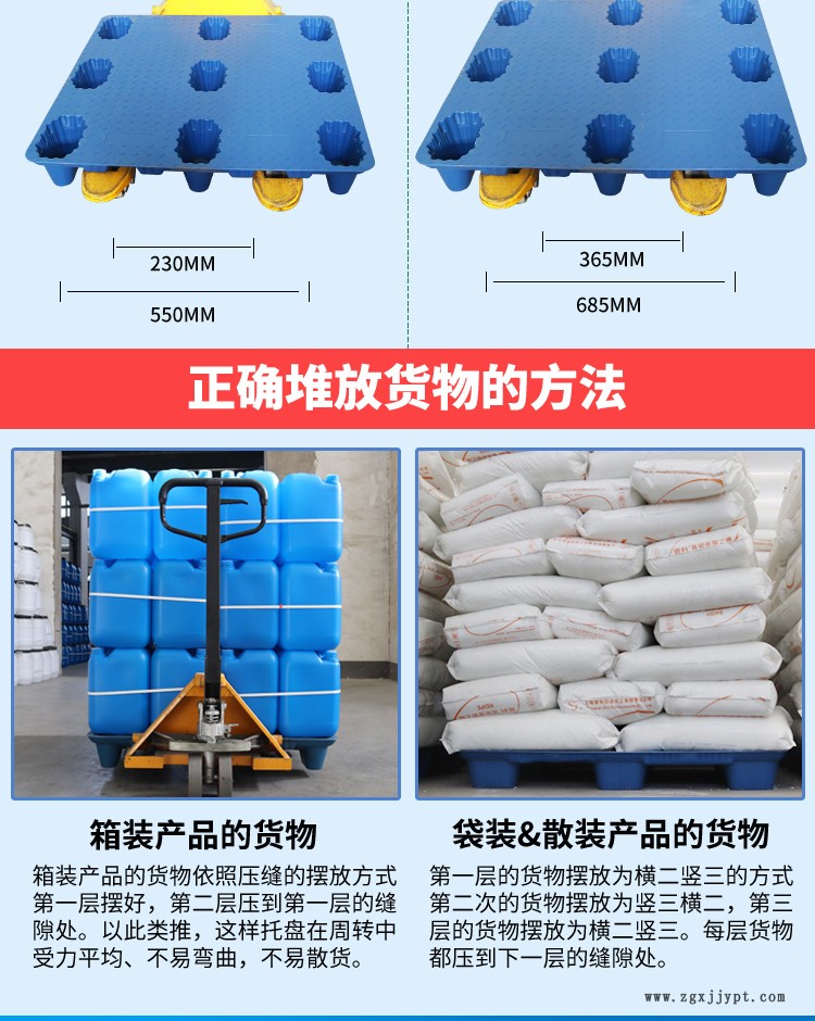 1、九腳「吹塑托盤」能配合機械叉車和手動液壓搬運叉車使用,完成對貨物的搬運、周轉、堆碼。有機械叉車和手動液壓搬運叉車通用的四面叉口,產品可在無條件使用機械叉車的場地和環(huán)境中使用。