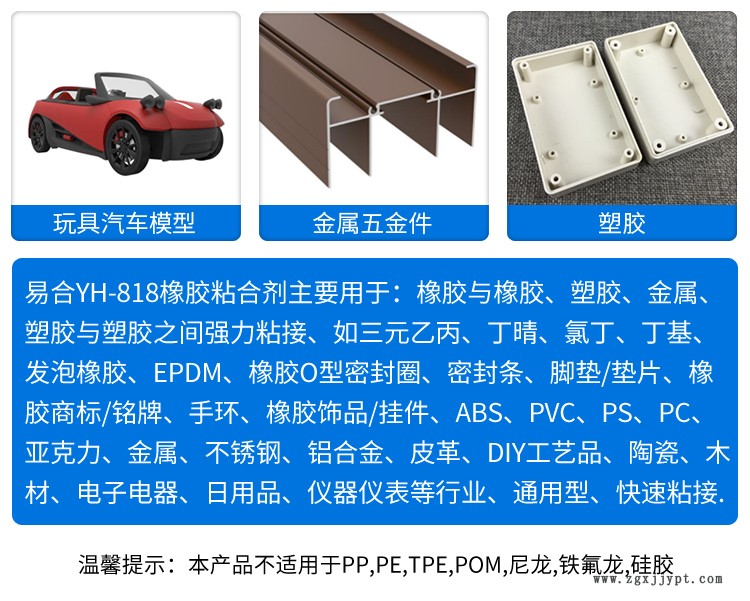 東莞易合化工牌YH-818專用橡膠膠水 塑料玩具膠水 橡膠粘金屬膠水 橡膠粘橡膠膠水 橡膠粘塑料膠水 粘接ABS膠水 PVC膠水 PS膠水 PC膠水 亞克力PMMA有機(jī)玻璃膠水 搪膠膠水 玩具模型塑膠膠水 PU皮革膠粘劑 三元乙丙專用膠水 EPDM橡膠膠水 氯丁橡膠 合成橡膠 丁基橡膠 丁晴橡膠 發(fā)泡橡膠膠水 橡膠粘鋁合金不銹鋼五金膠水 橡膠粘接金屬膠水 橡膠粘接瞬干膠水 粘橡膠專用膠水金屬與橡膠片粘合劑 橡膠粘接劑 橡膠粘合劑 橡膠快干膠水 粘橡膠瞬間膠水 快速固化 粘接力強(qiáng) 防水性好 無色透明 溶為一體 撕裂強(qiáng)度 耐高溫 耐氣候 通用型 具有優(yōu)良的粘接強(qiáng)度