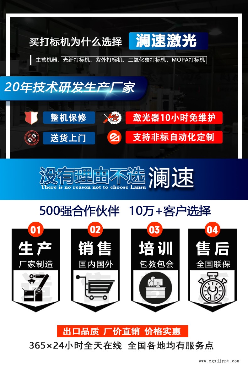 東莞市瀾速激光設(shè)備有限公司是一家專注研發(fā)、生產(chǎn)、銷售激光打標(biāo)機(jī)、激光焊接機(jī)、激光切割機(jī)以及非標(biāo)定制自動(dòng)化設(shè)備,服務(wù)于國內(nèi)上千家企業(yè)的高新技術(shù)源頭廠家。瀾速激光自成立以來,依托中國制造業(yè)基地的優(yōu)勢(shì),與眾多高校及研發(fā)機(jī)構(gòu)建立了廣泛的合作關(guān)系。 公司以市場(chǎng)為導(dǎo)向,以誠信為宗旨,積極進(jìn)取,開拓創(chuàng)新,不斷為廣大用戶提供優(yōu)質(zhì)的產(chǎn)品,專業(yè)的服務(wù)。