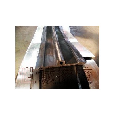 鋼邊式橡膠止水帶系以一般可伸縮的橡膠和兩邊配有鍍鋅鋼邊所組成的復(fù)合件。這種止水帶主要靠中間的橡膠段在混凝土變形縫間被壓縮或拉伸,而起到密封止水作用。一般來說,混凝土和橡膠的粘附力較差,在常規(guī)施工中,又因橡膠是柔軟彈性體,使混凝土在澆筑時不易被掏實,故在混凝土接縫膨脹,扯離、扭轉(zhuǎn)時會經(jīng)常出現(xiàn)橡膠止水帶松動和脫落,以致在水頭壓力較高情況下會產(chǎn)生滲漏現(xiàn)象。對于變形縫大的接縫來說,問題就更為突出。