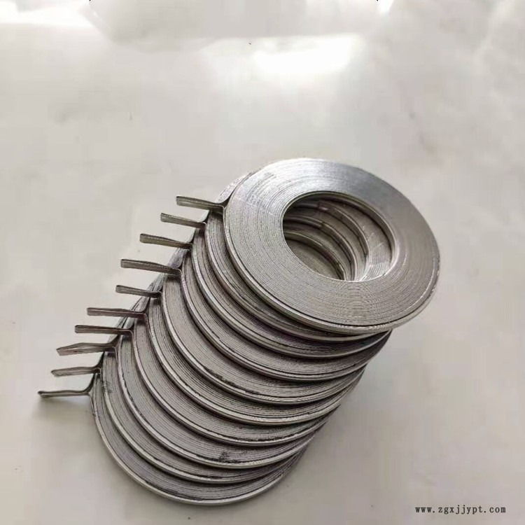 金屬纏繞墊片(帶內(nèi)外環(huán)型)由基本型加上由304,304L,316,316L等做成的內(nèi)、外環(huán)而構(gòu)成,內(nèi)環(huán)及外環(huán)用來加強壓力、防止纏繞松動。內(nèi)外環(huán)可選不同材質(zhì)。