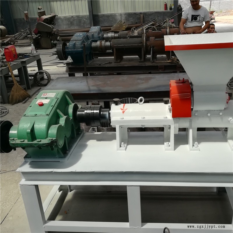 藍(lán)天炭黑擠棒機(jī)煤炭形狀多種:它將燃料粉煤擠出成具有一定強(qiáng)度的煤棒形狀根據(jù)要求有多種。用于代替塊煤,送入造氣爐中燃燒的新工藝。它可以充分利用煤粉,降低燃料成本。本機(jī)采用變螺距葉輪,將筒體后部的煤粉向前推進(jìn),煤粉在桶內(nèi)體積受到壓縮后,通過(guò)前部機(jī)頭的圓孔擠出,形成煤棒,圓孔的形狀有多種,煤棒的形狀也有多種。煤棒在前進(jìn)過(guò)程中受到重力而自然折斷。