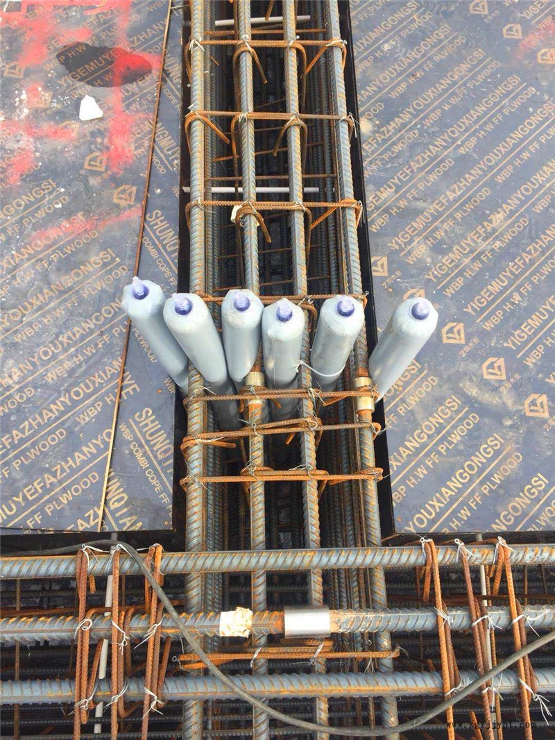 當(dāng)前建筑結(jié)構(gòu)施工縫后澆帶傳統(tǒng)做法為收口網(wǎng)封堵,由于收口網(wǎng)需要預(yù)先綁扎隔離措施的做法,應(yīng)用充氣式混凝土隔斷攔茬氣囊。在梁柱不同強度等級混凝土同時澆搗時,在梁距柱邊或墻邊50mm處設(shè)置鋼絲網(wǎng)片,并用鋼筋對其加固綁扎。根據(jù)超高層建筑使用預(yù)拌混凝土泵送澆搗的情況