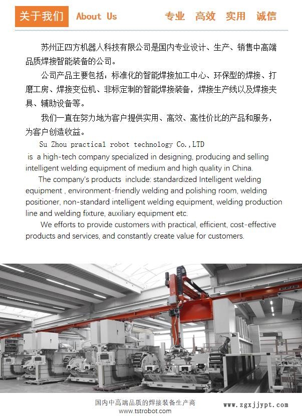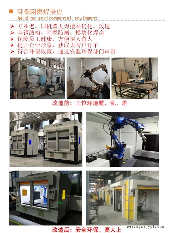 蘇州正四方機(jī)器人科技有限公司專業(yè)生產(chǎn)成套焊接工作站和焊接房,所有焊接房都采用優(yōu)質(zhì)鋼板,板式拼裝,模塊式設(shè)計,安裝簡單可拆卸,表面噴塑處理,外觀美觀大方,能夠有效隔離焊接煙塵和焊接弧光,保護(hù)員工的安全健康,維護(hù)車間環(huán)境整潔。