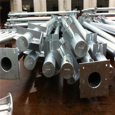 2、立桿或橫支臂采用直縫鋼管或無縫鋼管;立桿與橫支臂的連接端頭采用與橫臂相同鋼管,焊接加強板保護;立桿與基礎采用法蘭盤加預埋螺栓連接,焊接加強板保護;橫支臂與立桿端頭連接方式采用法蘭盤連接,并進行焊接加強板保護;