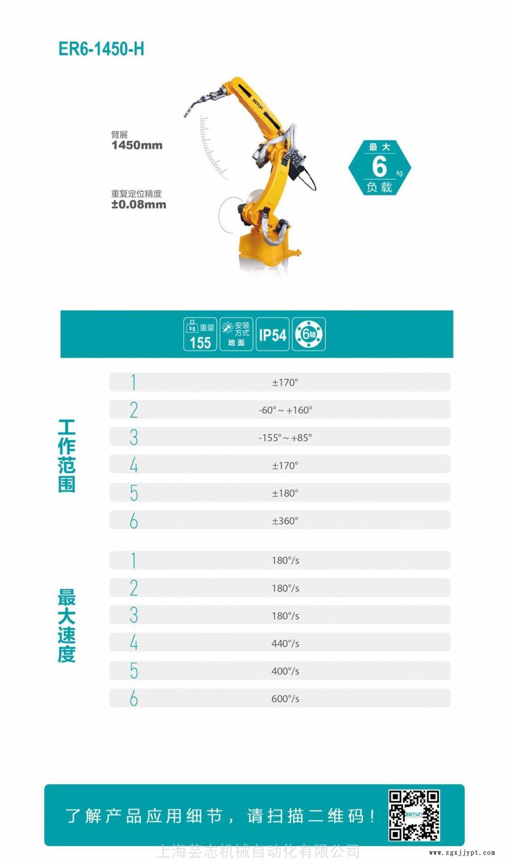 上海全新現(xiàn)貨ESTUN埃斯頓機(jī)器人ER6-1450-H機(jī)械手多少錢?