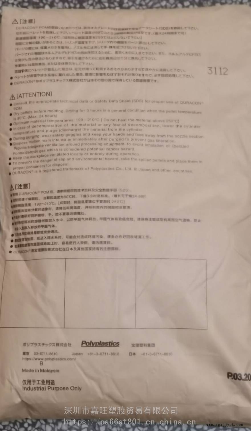 | 品名 : | POM | 加工級別 : | 注塑級 |
