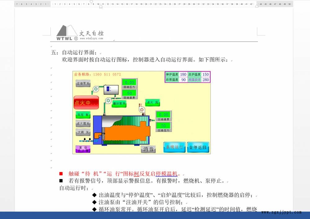 實(shí)現(xiàn)點(diǎn)火風(fēng)量(變頻)、小火風(fēng)量(變頻)、大火風(fēng)量(變頻)、點(diǎn)火控制、熄??刂?、閥組連鎖、進(jìn)出口油溫、膨脹槽溫度液位、油壓差等等符合國(guó)家標(biāo)準(zhǔn)的控制功能。
