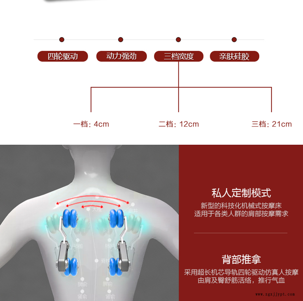 3.按摩:洗頭床背部仿真人手超長導(dǎo)軌按摩,手臂、小腿氣囊按摩。