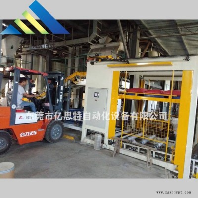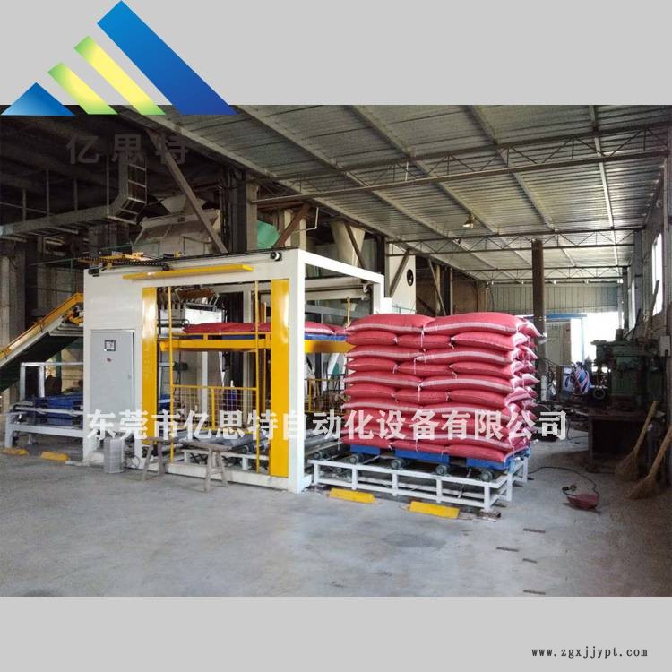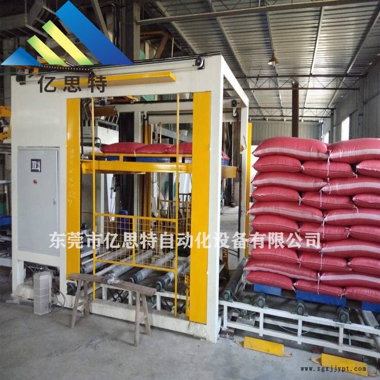 5、化肥碼垛機(jī)堆垛分層升降裝置,通過(guò)位置控制實(shí)現(xiàn)八層包裝袋的堆垛,空托盤(pán)自動(dòng)供給,動(dòng)作連續(xù)、