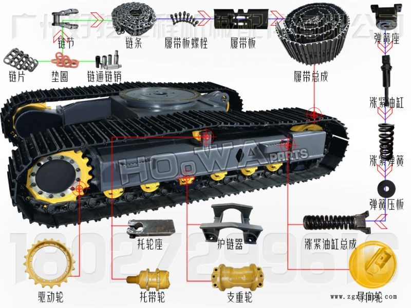 yucai/玉柴35-8小挖機履帶配件名稱示意圖: