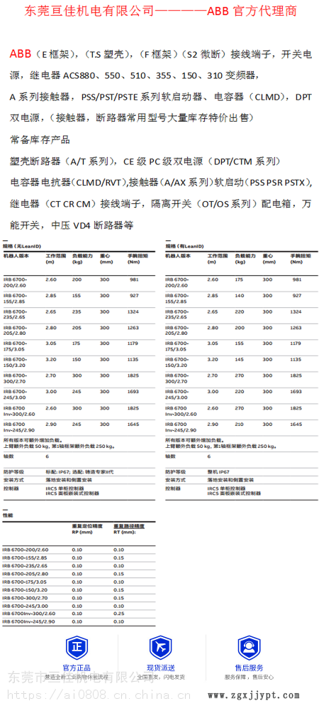 | 工作范圍 : | 3000mm | 品牌 : | ABB |
