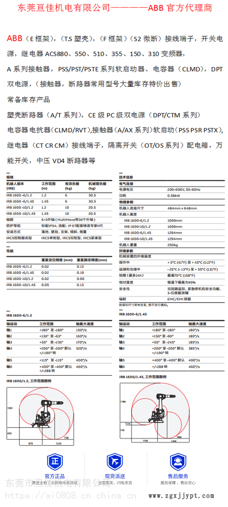 | 工作范圍 : | 1200mm | 品牌 : | ABB |