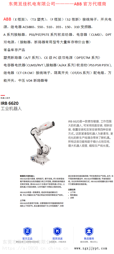 ABB工業(yè)機(jī)器人IRB 6620范圍2.2米 荷載150KG上下料-物料搬運(yùn)-點(diǎn)焊機(jī)械手