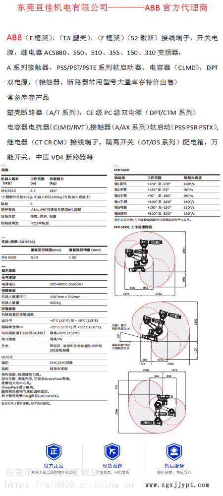 | 工作范圍 : | 2200mm | 品牌 : | ABB |