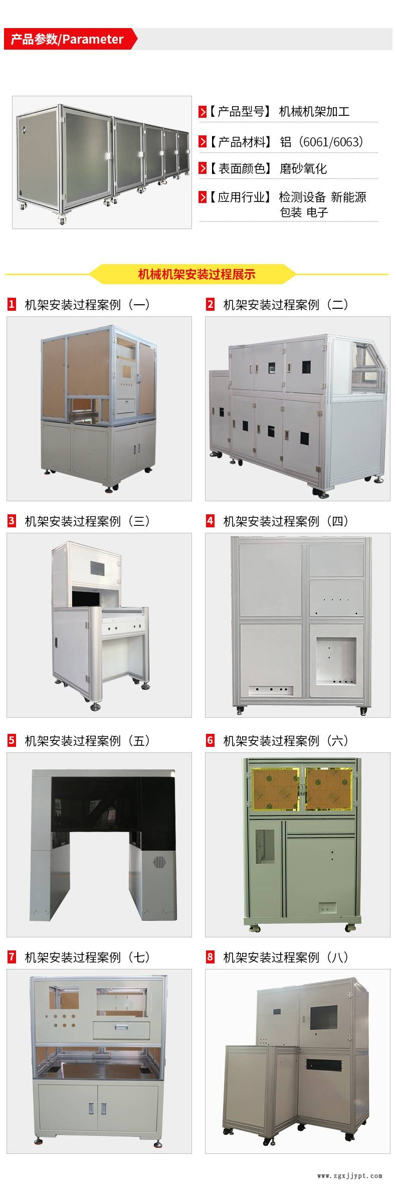 1、框架主要是由鋁型材和鋁型材相關配件組裝而成。根據(jù)框架的大小承載等要求會選用不同型號規(guī)格的鋁材。