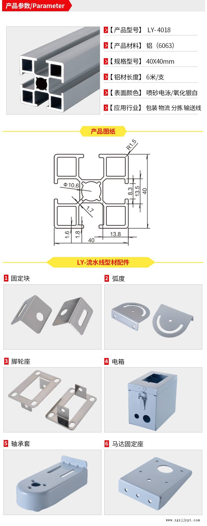 2、流水線工作臺(tái)、機(jī)械人工業(yè)圍欄、自動(dòng)化設(shè)備框架選用鋁材系20/30/40/60/80等型材,規(guī)格齊全安裝配件供應(yīng),可提供整套設(shè)計(jì)方案,