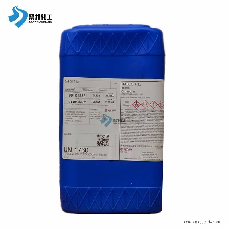 Dabco T-12(二月桂酸二丁錫)是一種沸點(diǎn)高的有機(jī)錫化合物。它在聚氨酯泡沫、涂層、粘附劑及密封劑的制造中用作催化劑。雖然純二月桂酸二丁錫在室溫下為固態(tài),但本公司Dabco T-12經(jīng)過(guò)特別處理,在18℃以上均呈液體狀態(tài)。由于氣候變化T-12物理性狀可能發(fā)生變化,如有變化,客戶(hù)應(yīng)把T-12加溫至65℃均可。