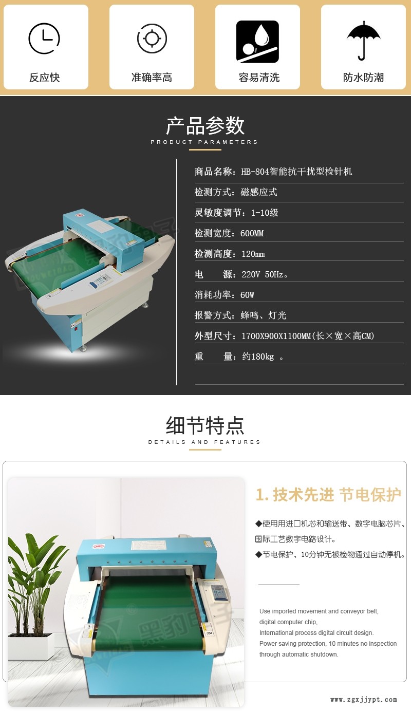 HB-804智能抗干擾型檢針機