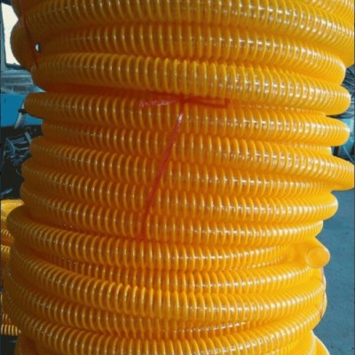 | 牛筋管簡介: pvc樹脂螺旋管為透明無毒軟管,簡稱牛筋管。牛筋管使用溫度:使用溫度在零下5攝氏度-零上65攝氏度。 牛筋管的特點: 一:PVC牛筋管質(zhì)量輕,pvc骨架部分(筋料)、軟料部分全部透明,農(nóng)業(yè)、工業(yè)使用時管內(nèi)介質(zhì)一目了然。 二:PVC牛筋管優(yōu)越的耐低溫性是其它任何一種管材無法比擬的。 三:耐候性俱佳,不受春夏秋冬任何季節(jié)的影響。 四:彎曲半徑小,彎曲自如(4寸管彎曲半徑40 cm)。 五:耐負壓力好,PVC牛筋管不存在吸癟、折斷、脫層等現(xiàn)象。 六:因材料中富含抗老化、抗紫外線照射原料,故PVC牛筋管耐老化程度遠遠超過螺旋管,使用壽命是PVC螺旋管的幾倍。 牛筋管的用途: 一:PVC螺旋管是有毒產(chǎn)品,牛筋管不但無毒,還可用于飲食業(yè)、酒精業(yè),另外還可輸送酸、堿介質(zhì)。 二:是工業(yè),農(nóng)業(yè)和工程上抽吸輸送水,污水,泥漿,油粉料的理想管材。 牛筋管的規(guī)格:有內(nèi)徑15毫米(4英分),20毫米(6英分)25毫米(1英寸)32毫米(1.2英寸)38毫米(1.5英寸),50毫米(2英寸),64毫米(2.5英寸),75毫米(3英寸),100毫米(4英寸),125毫米(5英寸),150毫米(6英寸),175毫米(7英寸),200毫米(8英寸) PVC滌綸纖維增強軟管俗稱蛇皮管或塑料蛇皮管,又稱PVC網(wǎng)格管,是一種以聚酯為原料,復(fù)合一層纖維層,以增強其強度的高質(zhì)量聚酯管。由于蛇皮管產(chǎn)品具有較高的質(zhì)量,因此保證了其使用的廣泛性。PVC纖維增強管管材為三層結(jié)構(gòu),內(nèi)外兩層是PVC軟質(zhì)塑料,中間一層是滌綸纖維增強網(wǎng),也**是強力滌綸是雙向纏繞形成的網(wǎng)狀加強層。該產(chǎn)品由于中間增加一加強滌綸纖維層,因而使其具有良好的力學(xué)性能和化學(xué)性能。 PVC纖維增強管具有較高的工作壓力,較長的使用壽命,具有耐候、耐磨、耐壓、耐腐蝕、抗老化、抗彎曲、耐穿透、耐水解、無毒無味等特性,低溫富有極強的回彈性。適于有壓或有腐蝕性的氣體、液體的輸送,廣泛應(yīng)用在機械、煤礦、石油、化工、農(nóng)灌、建筑、民用(太陽能熱水器、煤氣罐)等領(lǐng)域,現(xiàn)亦大量應(yīng)用于花園、草坪的澆灌。 |
