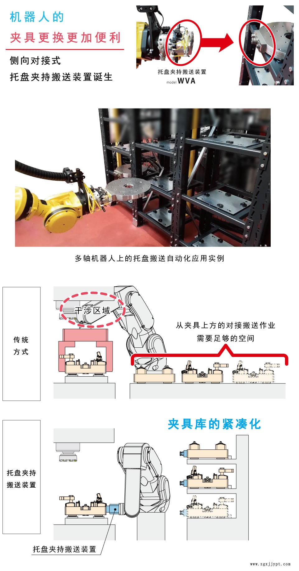 托盤夾持搬送裝置WVA 適合需要承受高力矩的托盤搬送作業(yè)的托盤夾持搬送裝置