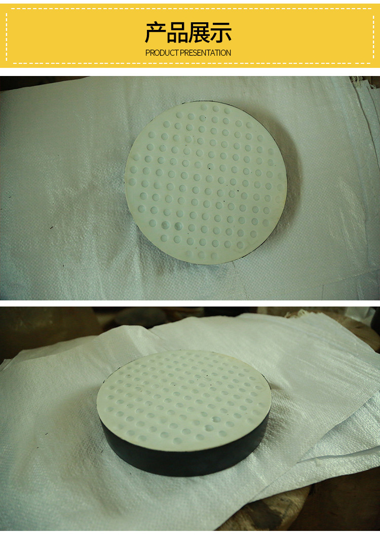 在板式支座表面粘復(fù)一層1.5mm-3mm厚的聚四氟板,**能制作成聚四氟滑板式橡膠支座
