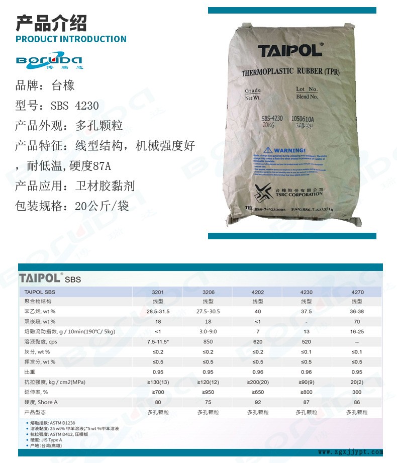TAIPOL 4230是一種苯乙烯-丁二烯-苯乙烯嵌段共聚物(SBS)產(chǎn)品,它在亞太地區(qū)有供貨。TAIPOL 4230的應(yīng)用領(lǐng)域包括添加劑/色母粒,生活消費(fèi)品和膠水膠紙。特性包括:穩(wěn)定,耐低溫性。