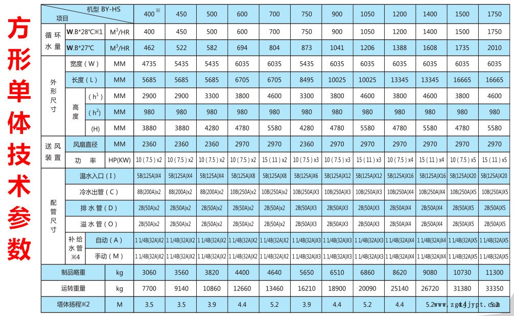 4.電機(jī)馬達(dá):采用全密封式冷卻塔專用電機(jī),380V/3Φ/50Hz,防水性能好,可使用于溫濕環(huán)境中。風(fēng)葉電機(jī)方型橫流式大型冷卻塔采用4臺(tái)為壹組、一臺(tái)損壞不影響其他組合的正常運(yùn)轉(zhuǎn)。