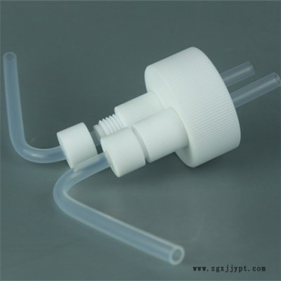 2、蓋子連接四氟接頭,用四氟螺母卡緊,密封性好