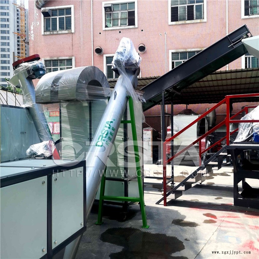 PP醫(yī)院醫(yī)療廢塑料破碎清洗回收生產(chǎn)線主要用于廢棄醫(yī)療點(diǎn)滴瓶、輸液袋等醫(yī)療非違禁類廢棄塑料的破碎清洗,脫水干燥,雜料分選和造粒,把醫(yī)療危廢加工成一般固體廢塑,進(jìn)而再生回收利用。首先將收集的醫(yī)療點(diǎn)滴瓶輸液瓶點(diǎn)滴袋輸液袋料進(jìn)行預(yù)選,加水破碎成小碎片,經(jīng)過(guò)高速摩擦清洗,搓洗出原料中紙質(zhì)標(biāo)簽,磨洗開(kāi)瓶嘴中橡膠塞,然后把物料進(jìn)行清水漂洗,分離出部分沉水瓶塞,再把漂洗干凈后的物料進(jìn)行脫水干燥,最后把點(diǎn)滴袋中塑料膜進(jìn)行風(fēng)選分離,把部分浮水硅膠瓶塞彈跳分選,徹底分選潔凈后的PP片子,達(dá)到一級(jí)工程原料要求標(biāo)準(zhǔn),可直接作為工程原料做成顆粒再生利用。