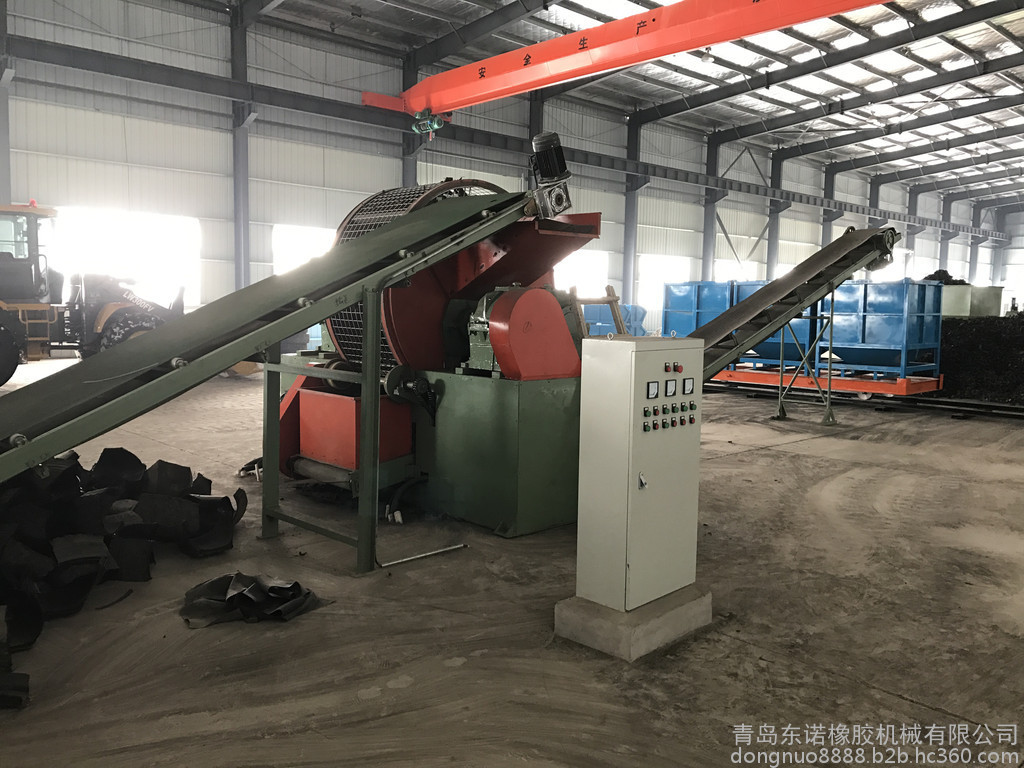 該產(chǎn)品是我公司引進(jìn)吸收消化世界先進(jìn)技術(shù)研制而成的 代產(chǎn)品。在常溫下對輪胎可直接投入機(jī)腔進(jìn)行粗破碎成3-8CM的塊狀,以便于下道旋轉(zhuǎn)研磨成10-30目膠粒和分離鋼絲或纖維的設(shè)備。
