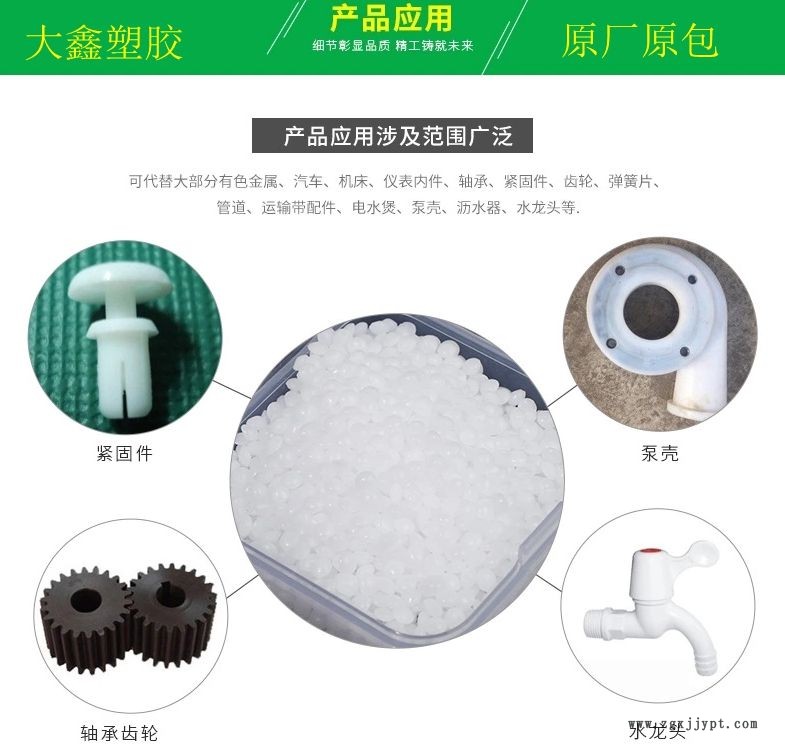 可代替大部分有色金屬、汽車、機(jī)床、儀表內(nèi)件、軸承、緊固件、齒輪、彈簧片、管道、運(yùn)輸帶配件、電水煲、泵殼、瀝水器、水龍頭等.