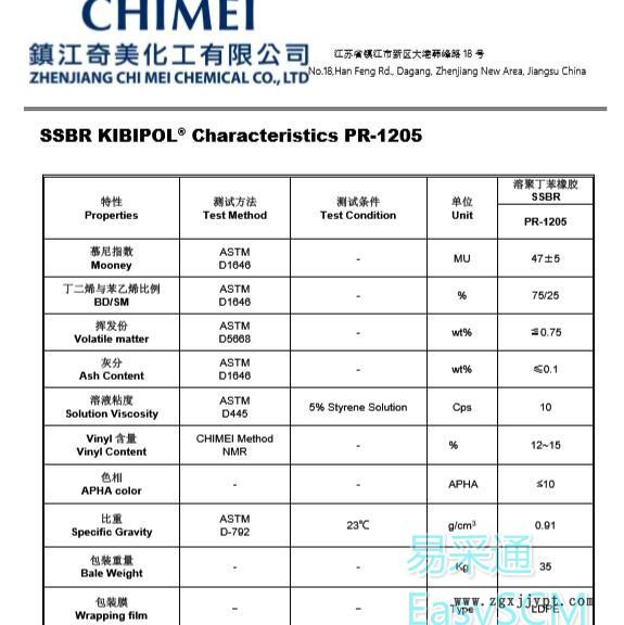 鎮(zhèn)江奇美溶聚丁苯橡膠SSBR PR-1205簡介: