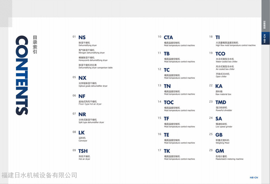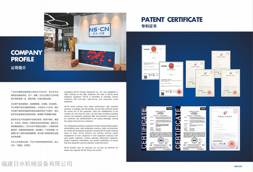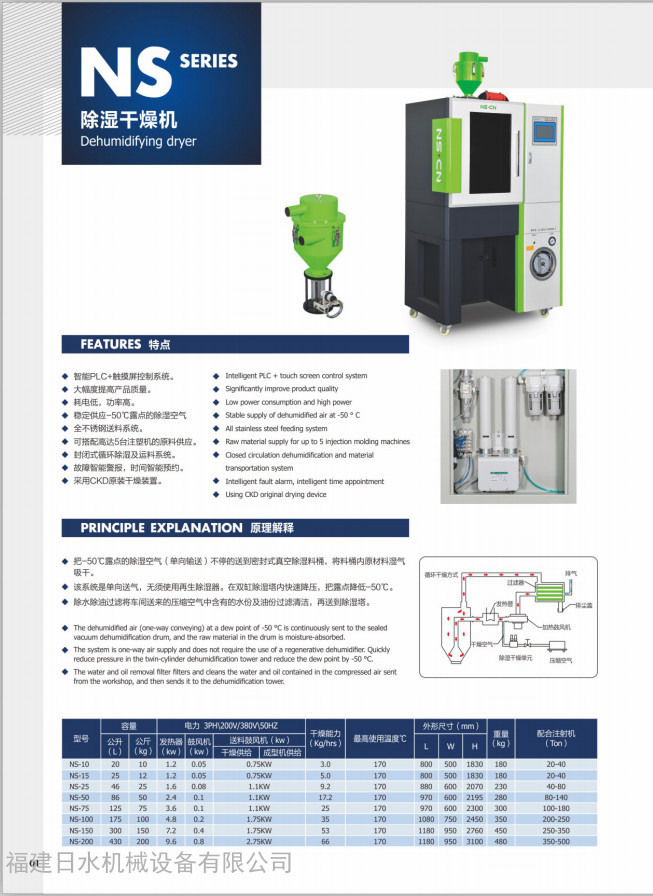 NS.CN日水機(jī)械設(shè)備有限公司專注于注塑機(jī)周邊設(shè)備的研發(fā)、生產(chǎn)、銷售。日水公司致力于向中國(guó)客戶提供質(zhì)量過(guò)關(guān)、服務(wù)完善、價(jià)格合理的設(shè)備。日水牌產(chǎn)品性能穩(wěn)定,組裝精度高,無(wú)泄漏,安全耐用,可以幫客戶延長(zhǎng)設(shè)備使用壽命。公司成立十幾年來(lái),我們?cè)谙蚩蛻籼峁┳稍兎?wù)和周邊設(shè)備研發(fā)生產(chǎn)過(guò)程中,我們的專業(yè)性**是我們獨(dú)特的優(yōu)勢(shì),贏得的客戶的尊重與信賴?,F(xiàn)如今公司擁有兩個(gè)制造工廠并投入生產(chǎn)使用,并在上海、深圳、蘇州、杭州、寧波、青島、煙臺(tái)、成都、重慶、中山、東莞等地設(shè)立十幾個(gè)辦事處。經(jīng)過(guò)ISO14001:2004BS ENISO9001:2000認(rèn)證。我司專業(yè)生產(chǎn)的設(shè)備有中央供料系統(tǒng)、除濕干燥機(jī)、模溫機(jī)、冷水機(jī)、粉碎機(jī)等設(shè)備,選擇日水意味著選擇放心。日水在生產(chǎn)的每臺(tái)設(shè)備中,從零部件質(zhì)量檢測(cè)、機(jī)器組裝性能測(cè)試、品檢確認(rèn)、產(chǎn)品合格每一步都履行專人專職全面質(zhì)量管理,保證客戶使用的每臺(tái)設(shè)備安全有保障。 日水人目光是長(zhǎng)遠(yuǎn)的,不為**的利練而放棄明天,日水追求的愿景是:富有價(jià)值的注望機(jī)周邊設(shè)備全球之供應(yīng)商。