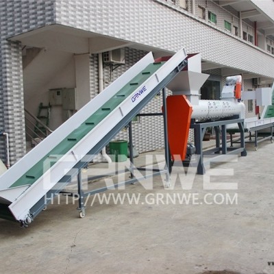 本套設(shè)備主要由:輸送帶、破碎機(jī)(粉碎機(jī))、磨擦清洗機(jī)、沉淀漂洗槽、鏈料挖料機(jī)、塑料擠干脫水機(jī)、控制柜等組成。對(duì)廢舊塑料進(jìn)行分選(分揀)、破碎(帶水粉碎)、摩擦清洗、漂洗、擠干脫水等回收造粒再生處理,整條生產(chǎn)線從開始廢料到成品,操作非常高效的清洗廢塑料制品、廢臟農(nóng)用薄膜,廢包裝材料。操作簡(jiǎn)易,效率高、環(huán)保、節(jié)能。