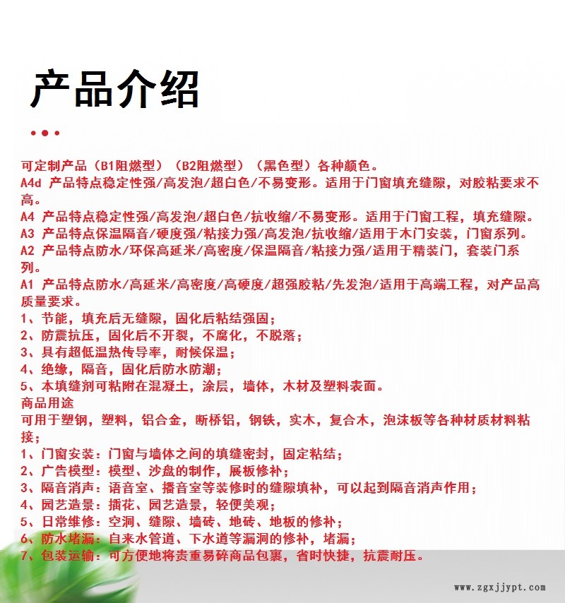 | 用途范圍 : | 門窗填縫堵漏,建筑門窗填充 火車皮封箱 | 特色服務(wù) : | 1對1客服 |
