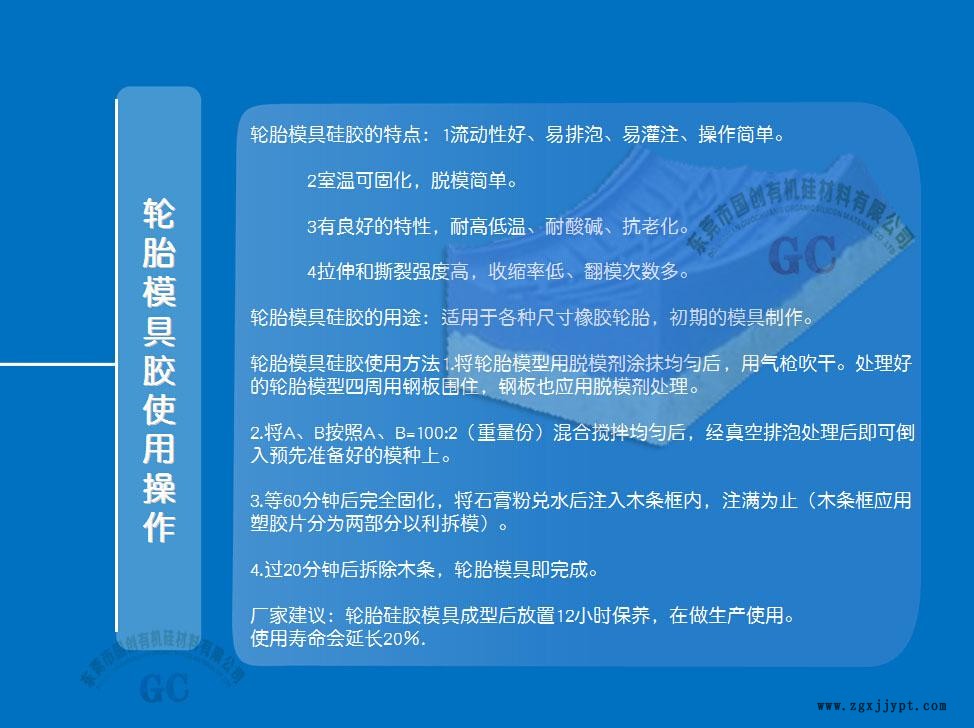 輪胎模具硅膠的用途:適用于各種尺寸橡膠輪胎,初期的模具制作。輪胎精密模具鑄造、精密模具制造。