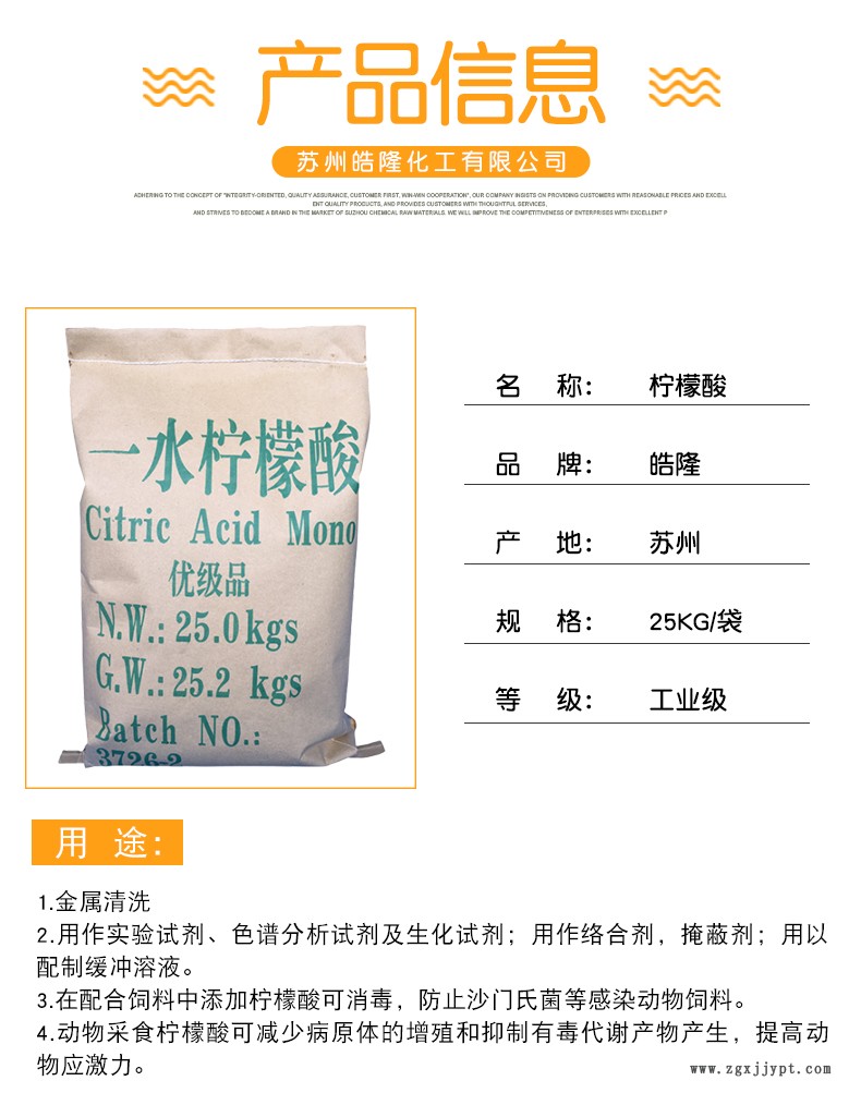 | 等級(jí) : | 工業(yè)級(jí) | 類型 : | 一水檸檬酸 |