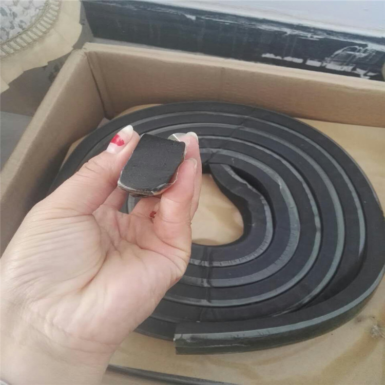 膩?zhàn)有陀鏊蛎浵鹉z止水條。是以十余種材料經(jīng)密練、混練、擠制而成的具有遇水膨脹特性的條狀密封