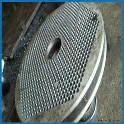 容器管板,就是在圓形鋼板上鉆出比管子外徑一樣略大一些的孔,是換熱器中起到固定管子以及密封介質(zhì)作用的圓鋼。將管子穿入焊住固定,起這樣作用的一種配件。