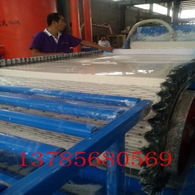 硅質(zhì)板設(shè)備同步完成發(fā)泡、固化、覆膜過(guò)程。面層軋壓設(shè)備用于將面層材料軋壓成設(shè)計(jì)所需要的花紋或圖形;反應(yīng)灌注機(jī)用于A料、B料按工藝要求的比例計(jì)量混合;移動(dòng)澆注機(jī)用于將混合的AB料及泡沫以往復(fù)移動(dòng)的方式覆蓋在下層面材上;層壓機(jī)上下各一臺(tái),用于原料在上下層移動(dòng)鏈板間固化、定型;熱風(fēng)循環(huán)裝置用于層壓機(jī)內(nèi)部的加溫;貼側(cè)邊紙和側(cè)邊輸送機(jī)用于板材測(cè)邊擋料,修邊機(jī)用于改性EPS防火保溫板板兩側(cè)修邊;自動(dòng)跟蹤機(jī)用于將板材切斷成定長(zhǎng);生產(chǎn)方式為連續(xù)不間斷,生產(chǎn)效率高,產(chǎn)品質(zhì)量穩(wěn)定,板材密度均一。