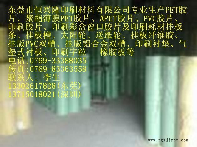 東莞市恒興隆印刷材料有限公司專業(yè)生產(chǎn)環(huán)保PET透明膠片APET透明膠片,PETG透明膠片PP透明膠片PP磨砂膠片PP本色膠片PVC透明膠片PVC磨砂膠片。PVC透明膠PVC磨砂膠。經(jīng)營(yíng)銷售進(jìn)口PVC透明膠片PET透明膠片APET透明膠片。進(jìn)口PE靜電膜PE保護(hù)膜。適用于彩色印刷、薄膜開關(guān)、電子、吊牌、紙盒天窗、彩盒窗口、掛版、玩具、食品、藥品、化妝品、五金…各行業(yè)、產(chǎn)品均通過(guò)SGS、FDA驗(yàn)證。