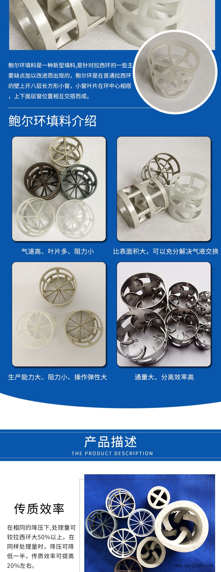 好源來鮑爾環(huán)填料有通量大、阻力小、分離效率高、以及操作彈性大等優(yōu)點,在相同的降壓下,處理量可比拉西環(huán)大50%以上。在同樣處理量時,降壓可降低一半,傳質(zhì)效率可提高20%左右。與拉西環(huán)比較,這種填料具有生產(chǎn)能力大、阻力小、操作彈性大等特點,在一般情況下同樣壓降時處理可比拉西環(huán)大50%以上,同樣處理時降壓比拉西環(huán)小50%-70%,塔高也有降壓,采用鮑爾環(huán)可以比拉西環(huán)節(jié)約20%-40%填料容積。