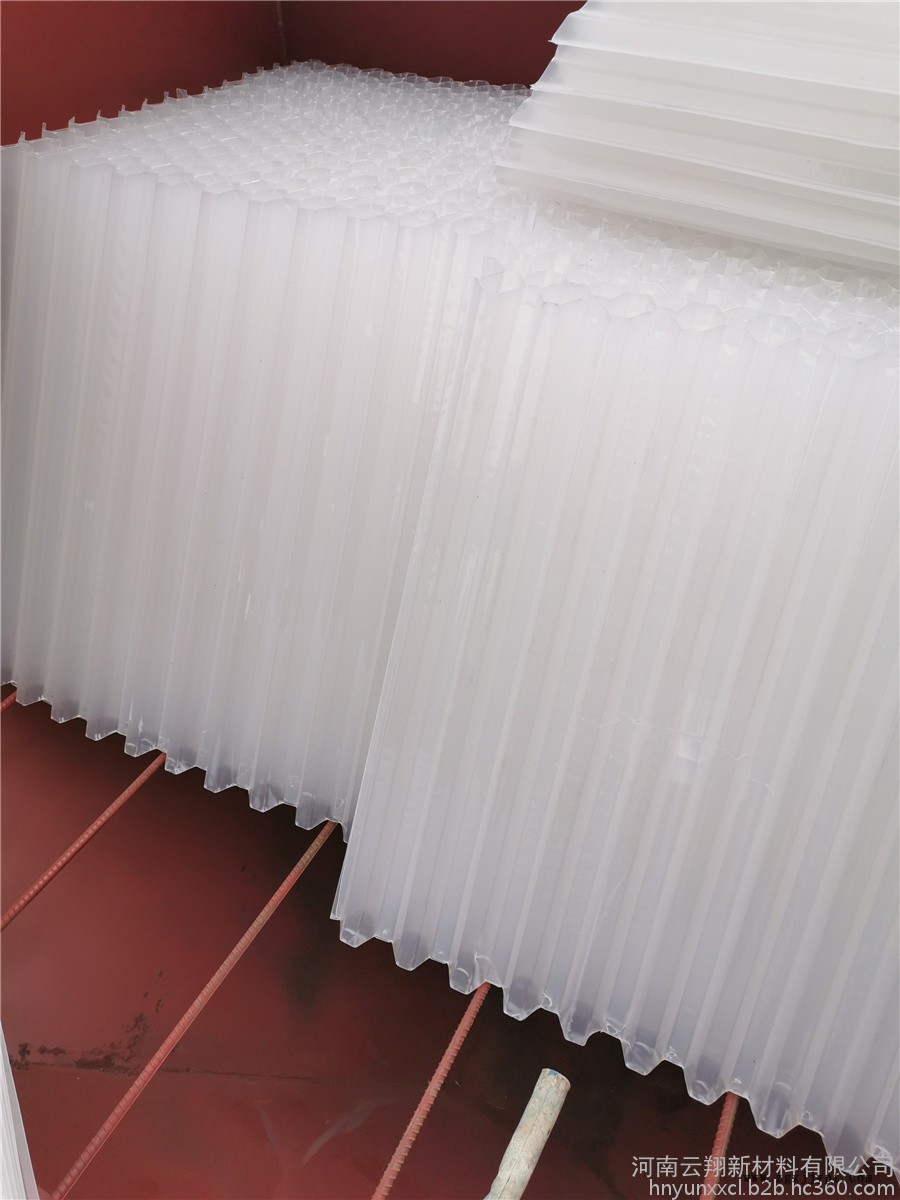 六角形蜂窩填料材質(zhì)有聚丙烯(PP)聚氯乙烯(PVC)乙丙共聚和玻璃鋼(FRP)四種。組裝形式有斜管和直管兩種形式。