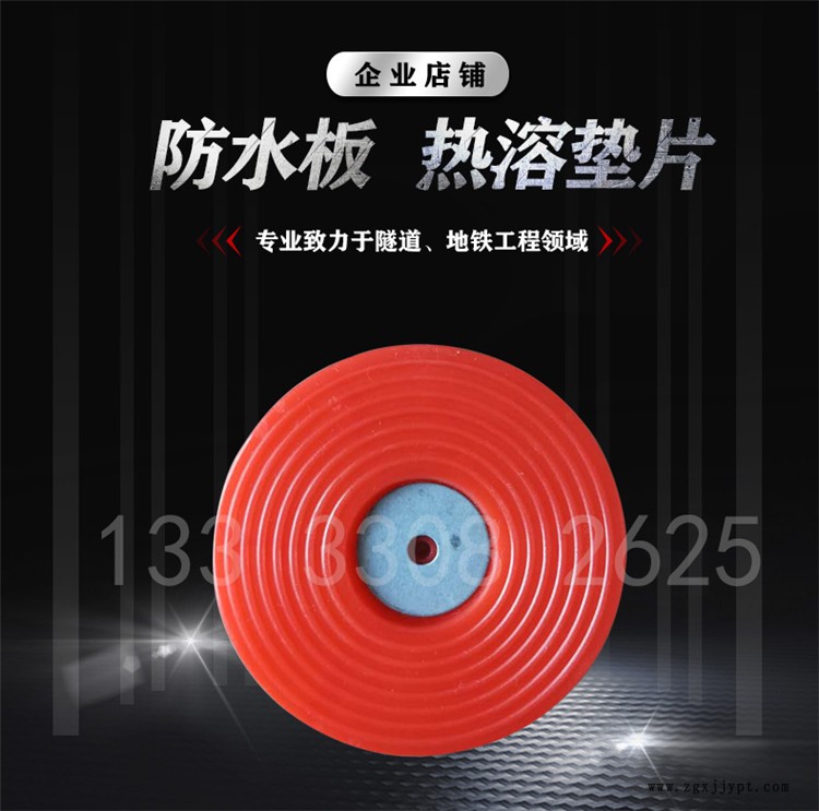 此款產(chǎn)品克服了傳統(tǒng)的防水板吊帶式安裝中損壞防水板的缺點(diǎn),大多數(shù)隧道選用紅色,易找到膜后面墊片位置,易于施工,主要應(yīng)用于各類顏色的防水卷材,鋪設(shè)簡(jiǎn)單。